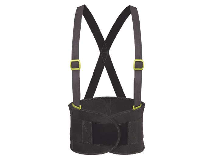 Reinforced elastic back support, medium size, with front closure and plastic hardware.